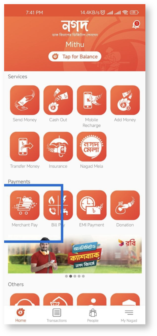 The user goes to the Nagad service and makes payments there depending on the account type of the provided wallet.
