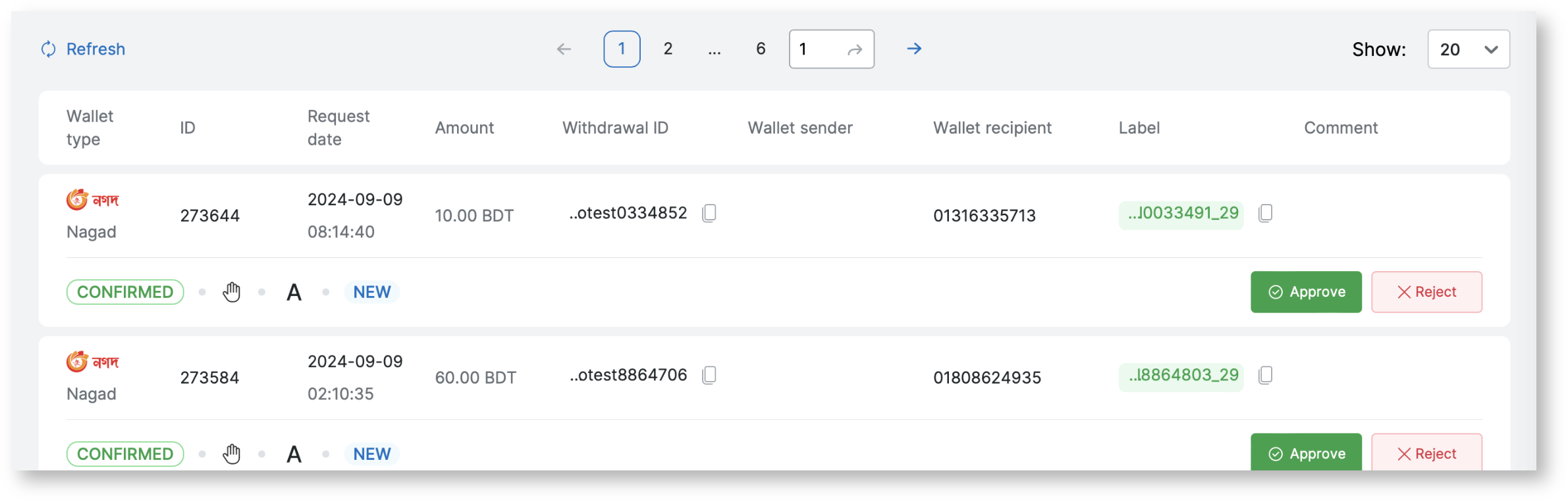 5 | REJECTED | Status for withdrawal when the withdrawal request was rejected. |