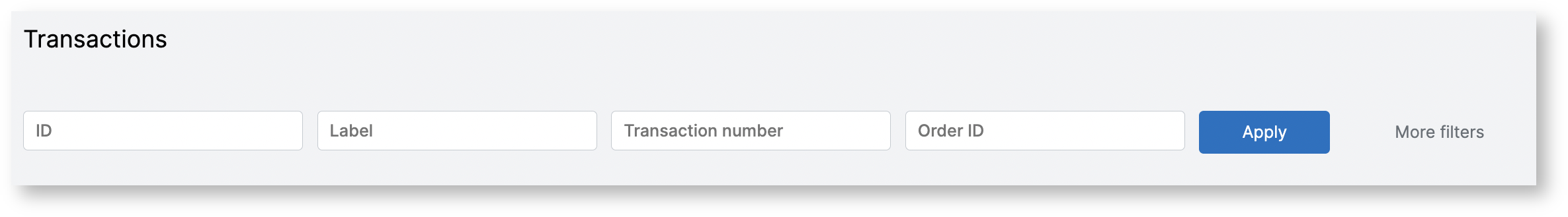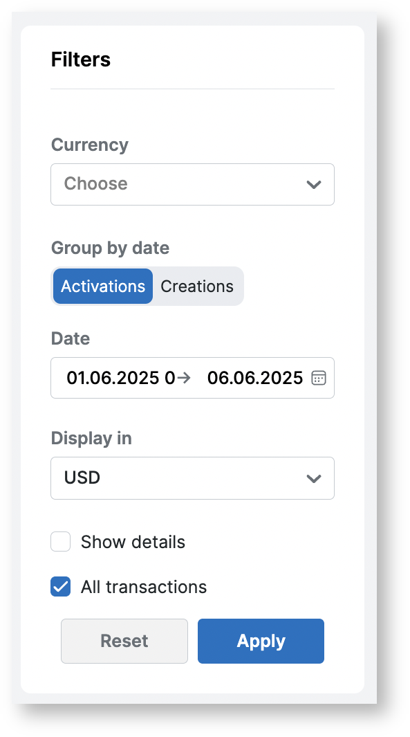 Filters of the Transactions page