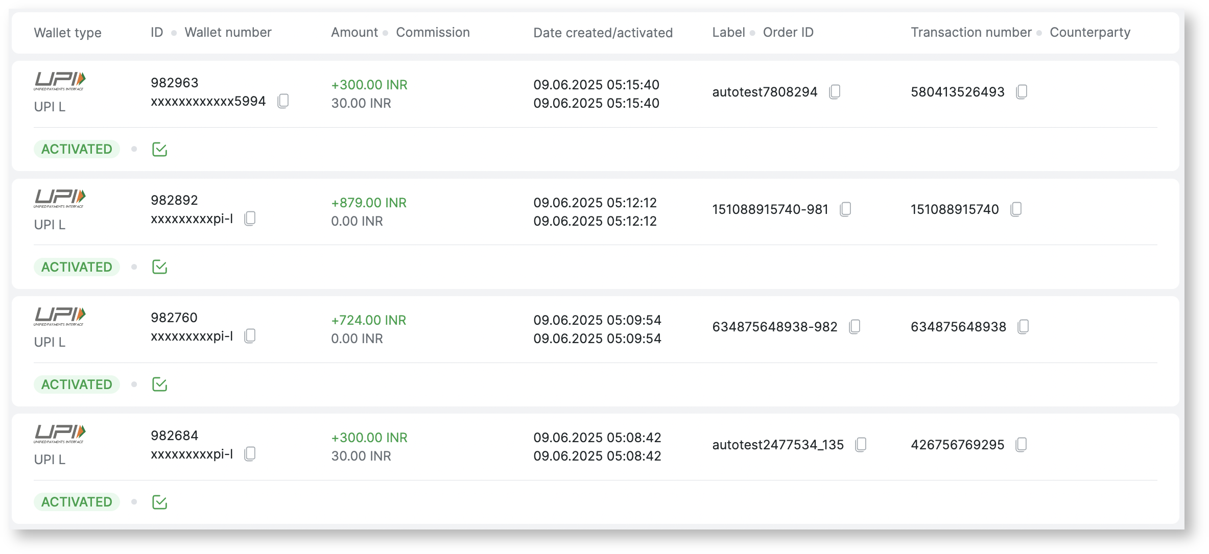 | Date created/activated | Displays the creation and activation date of the transaction |