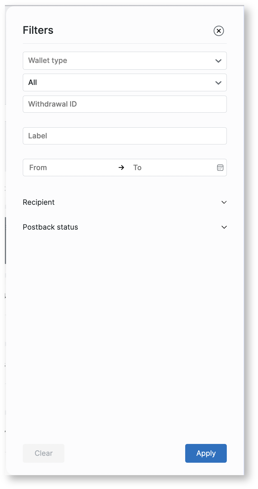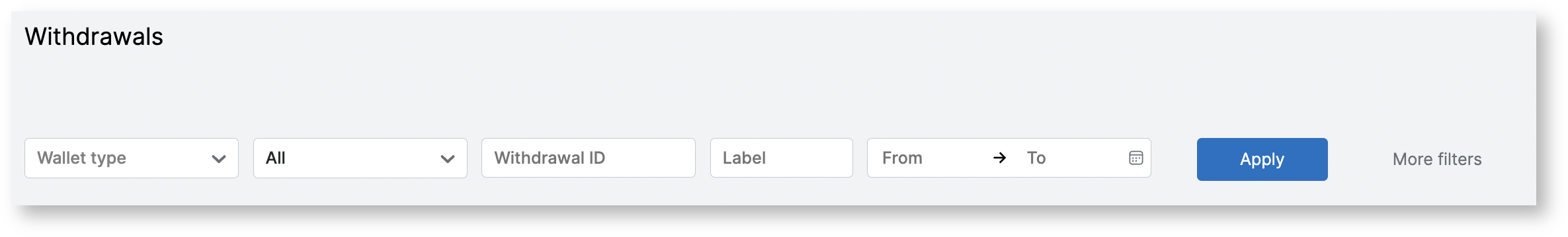 Filters of the Withdrawals page