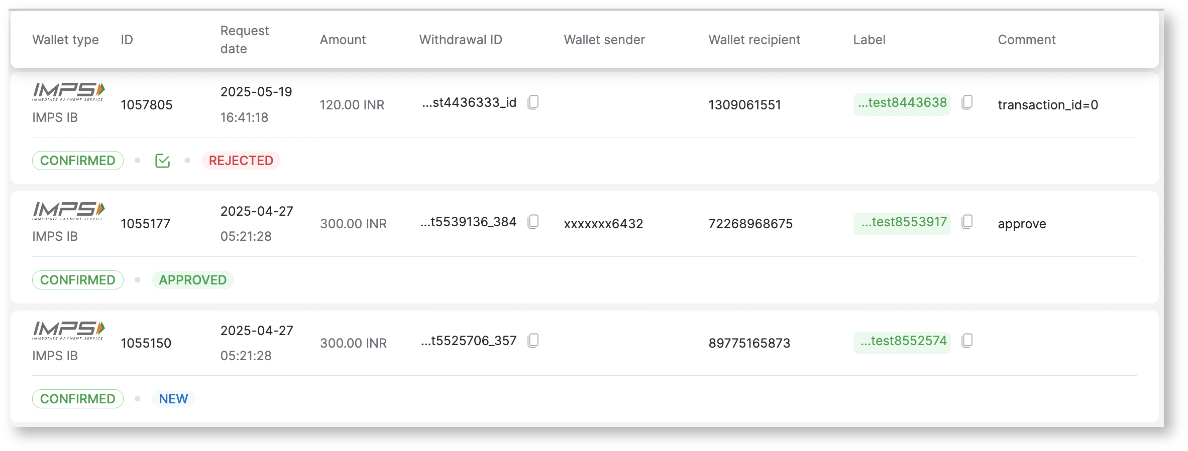 Request date | Displays the date and time when the withdrawal was logged |