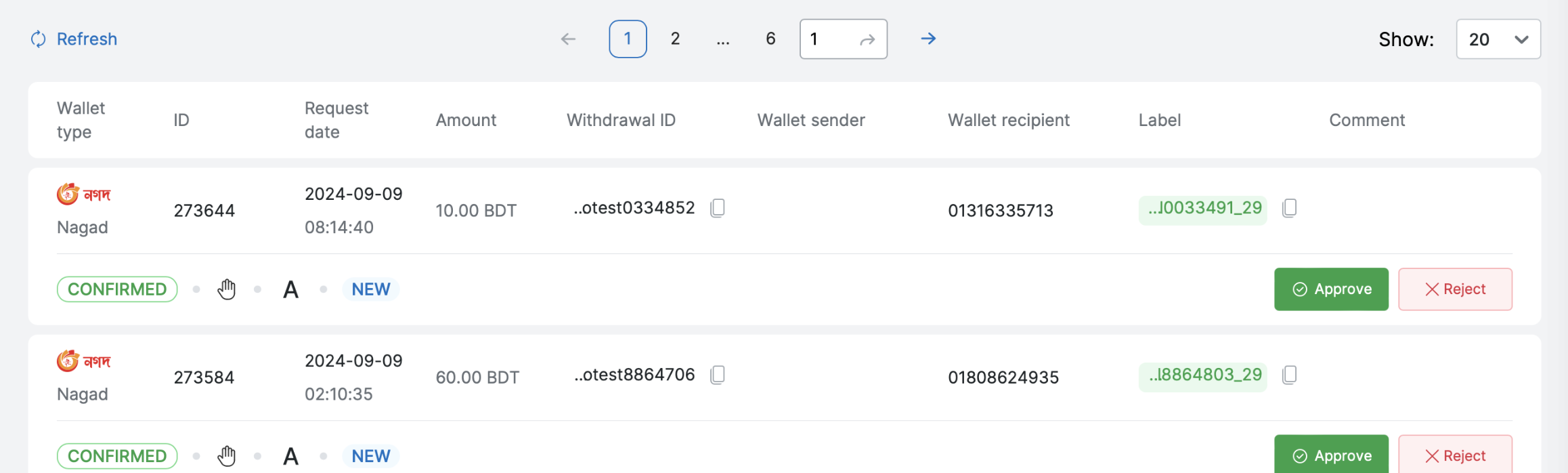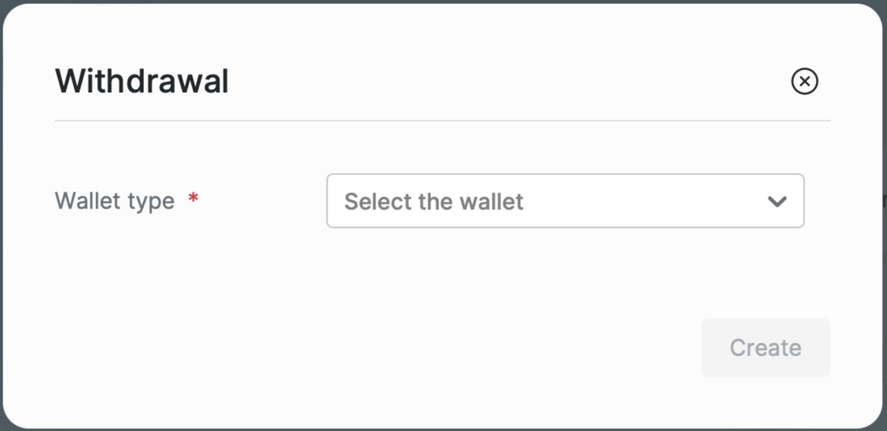 To create a withdrawal request, you need to go to the Withdrawals page Payments → Withdrawals and perform the following steps