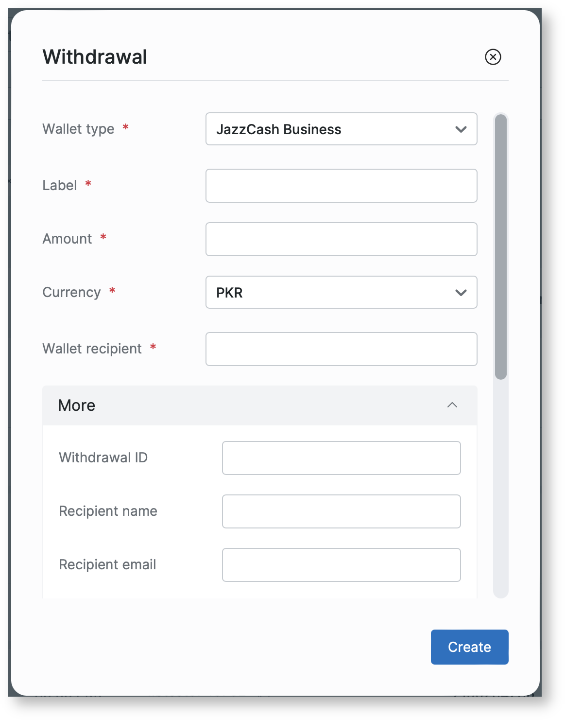 To create a withdrawal request, you need to go to the Withdrawals page Payments → Withdrawals and perform the following steps