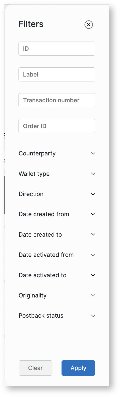 | Тип кошелька | Отображает тип электронной платежной системы |