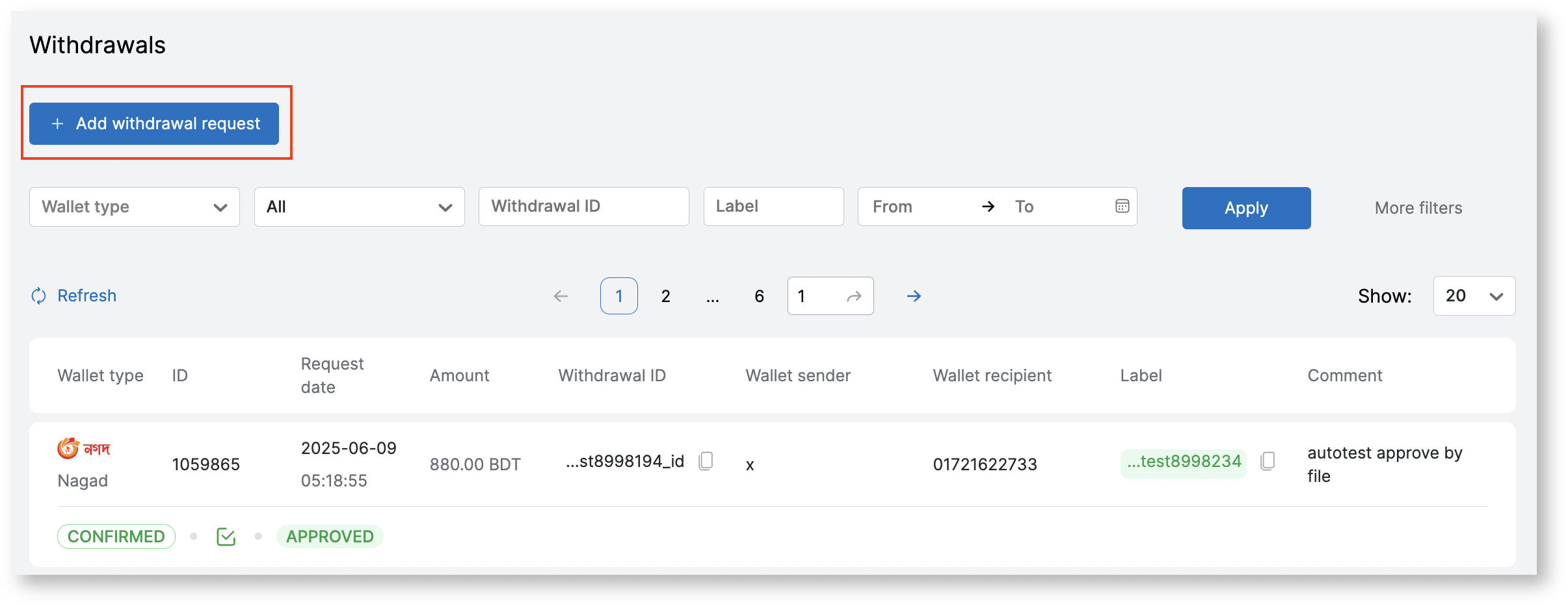 | Дата заявки | Отображает дату создания заявки на вывод | |