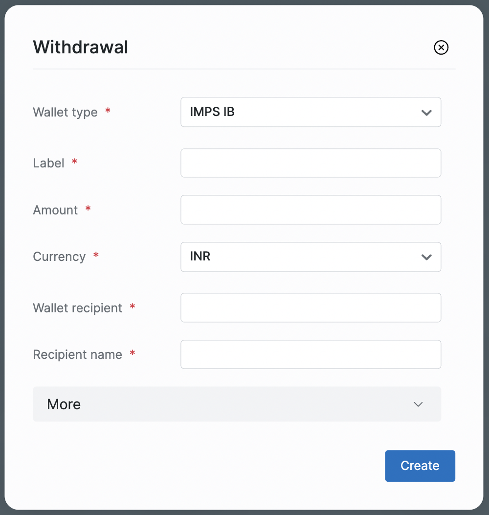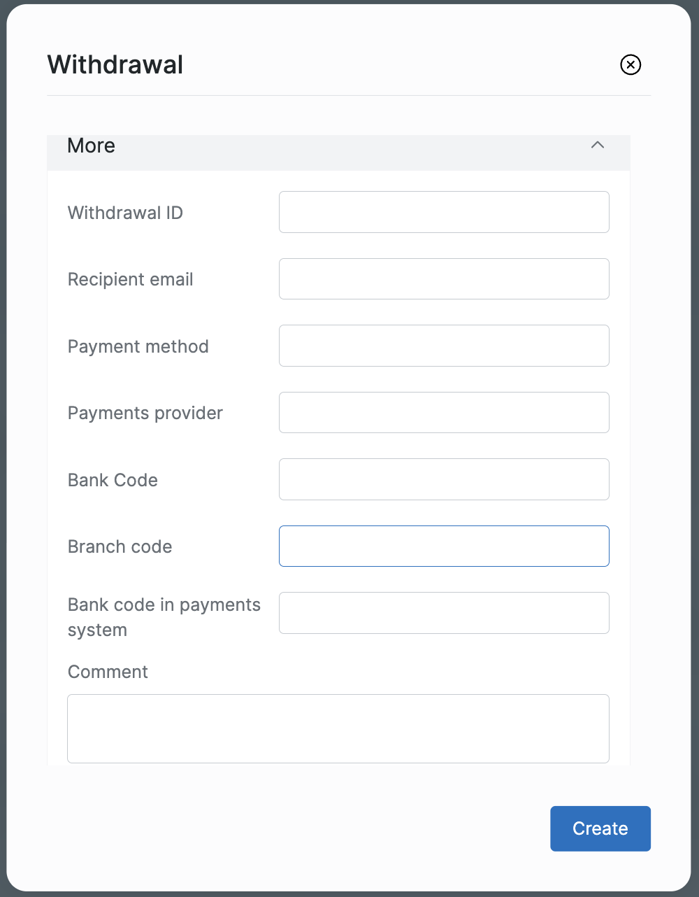 Создание заявки на вывод