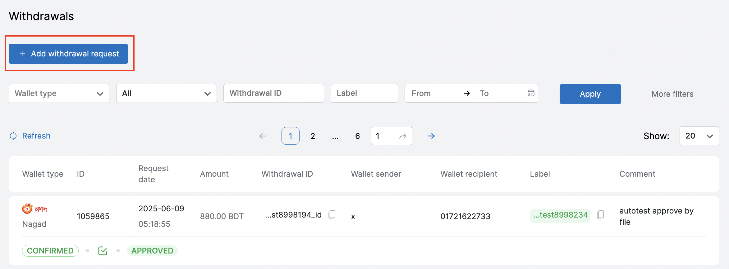 Дата заявкиОтображает дату создания заявки на вывод