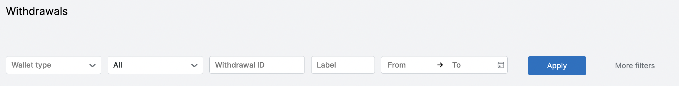 Для перехода на страницу Выводы выберите пункт меню Оплаты → Выводы.