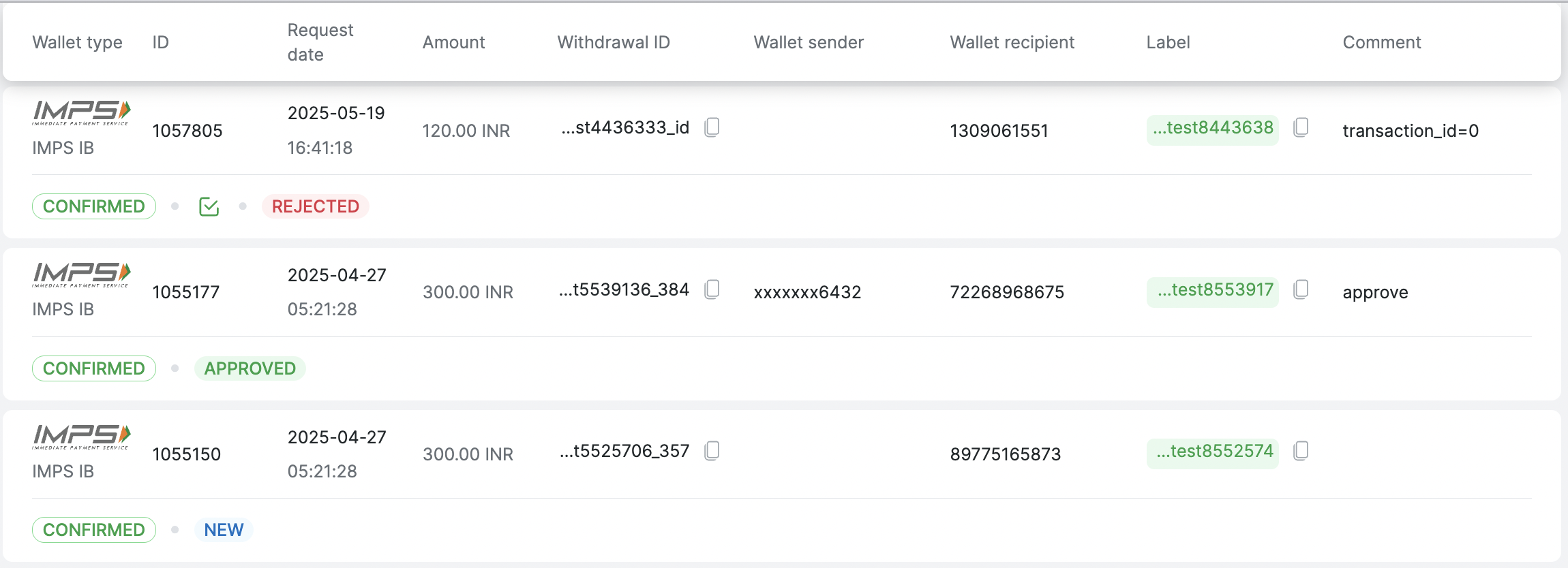 Вкладка отображает список всех выводов, произведенных по всем типам электронных платежных систем.