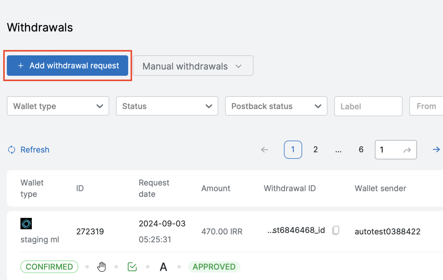 - Press the button "Add withdrawal request".