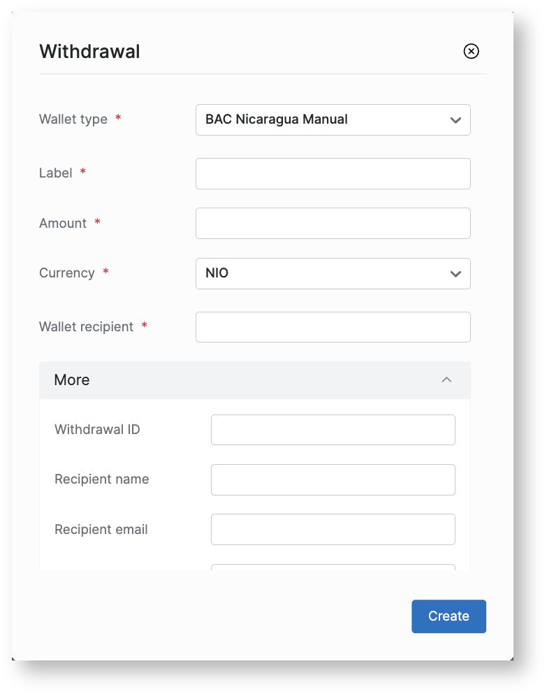 Обязательные поля для выплаты BAC Nicaragua Manual: