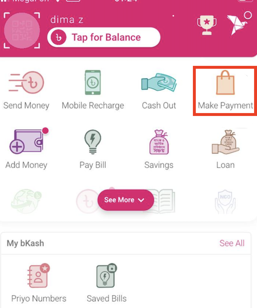 The user goes to the bKash service and makes payments there depending on the account type of the provided wallet.