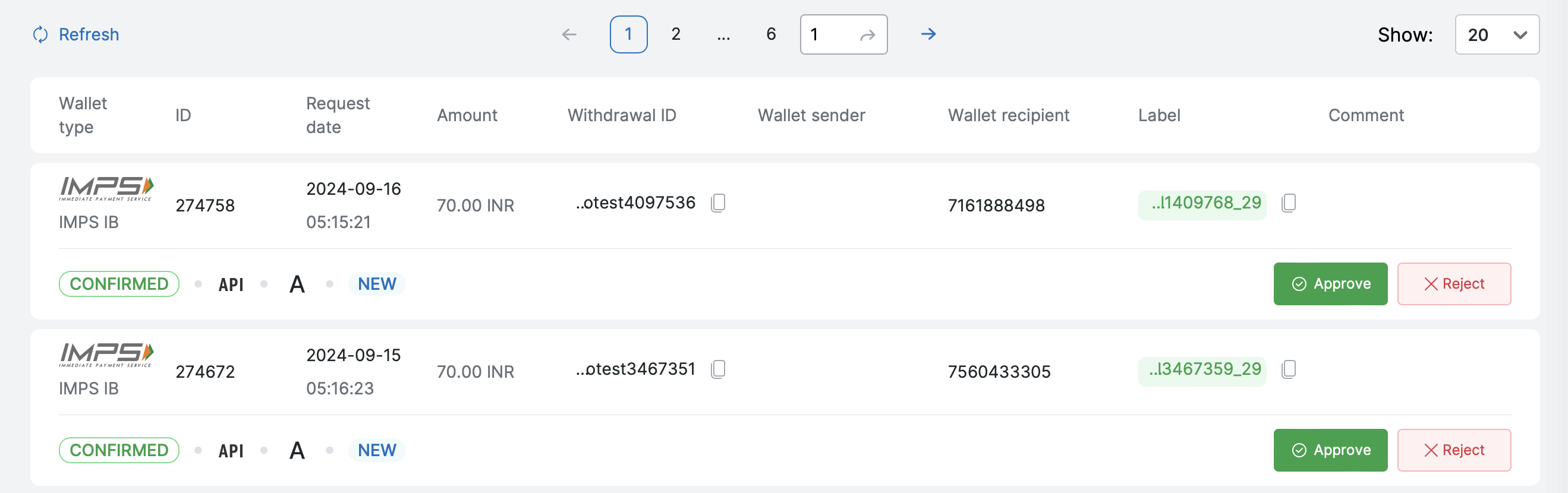 *Если при попытке создания заявки на вывод сумма балансов счетов в валюте заявки будет меньше, чем общая сумма новой и еще незавершенных заявок, то отобразится ошибка 'Недостаточный баланс' (для настройки данного функционала обратитесь в ТП Paykassma).