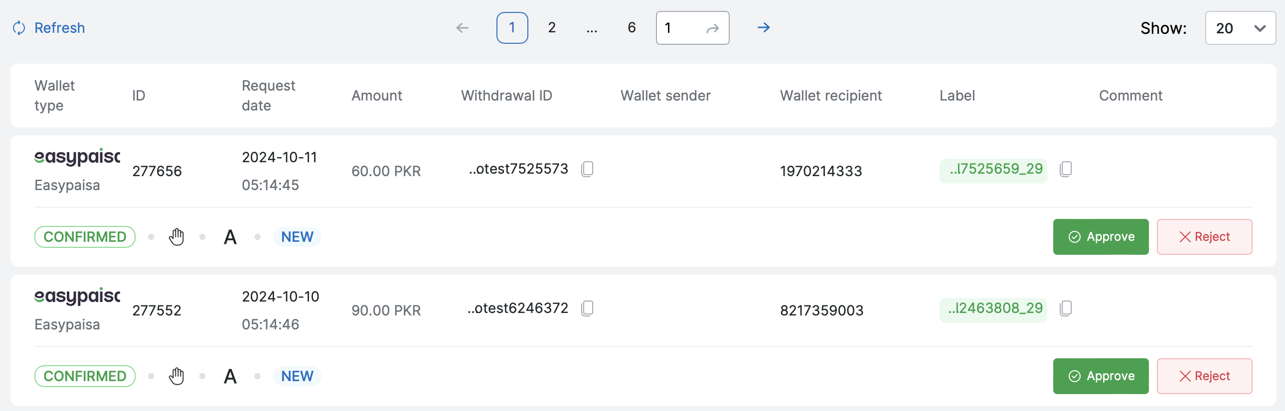 Example of a withdrawal postback for a EasyPaisa
