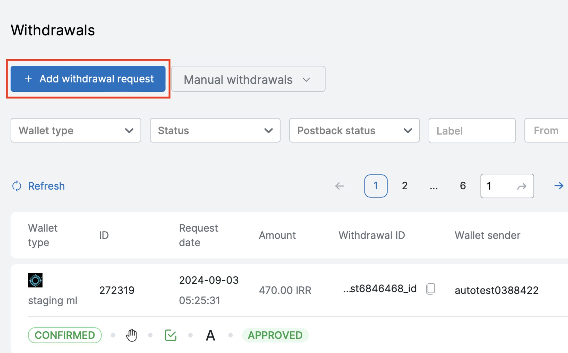 - Press the button "Add withdrawal request".
