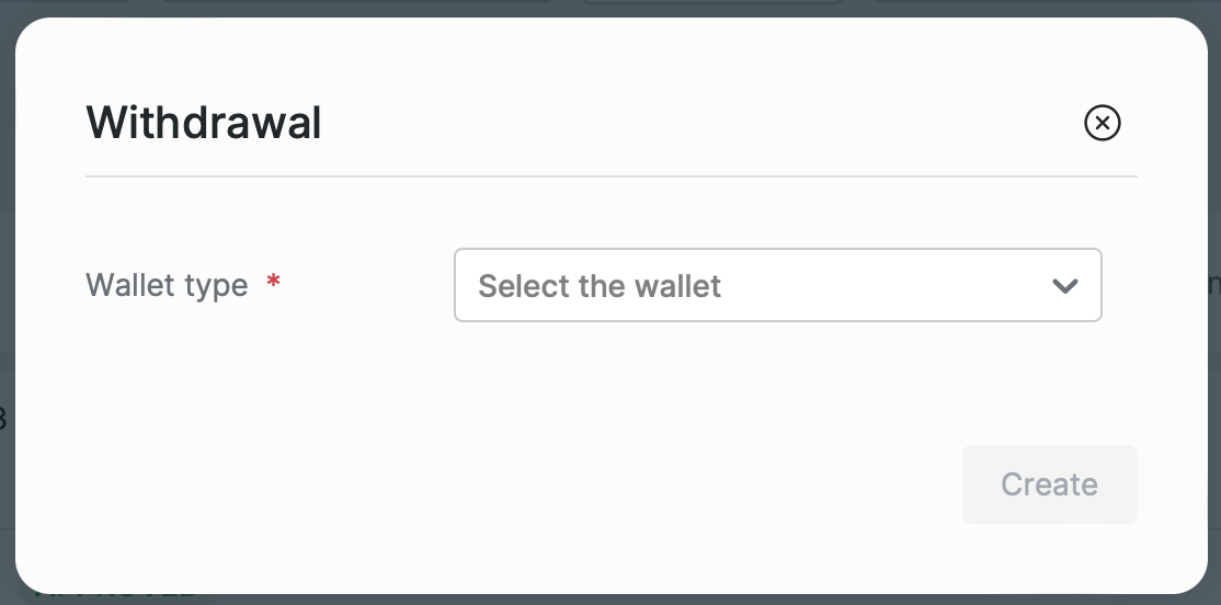 To create a withdrawal request, you need to go to the Withdrawals page Payments → Withdrawals and perform the following steps