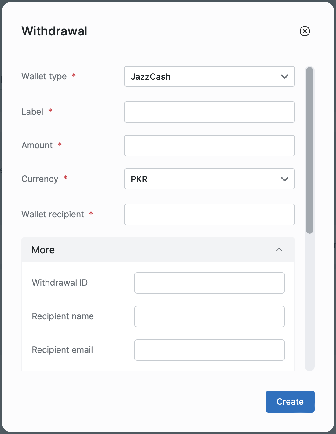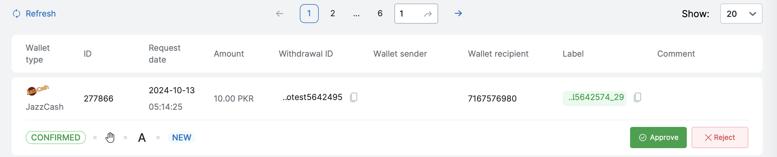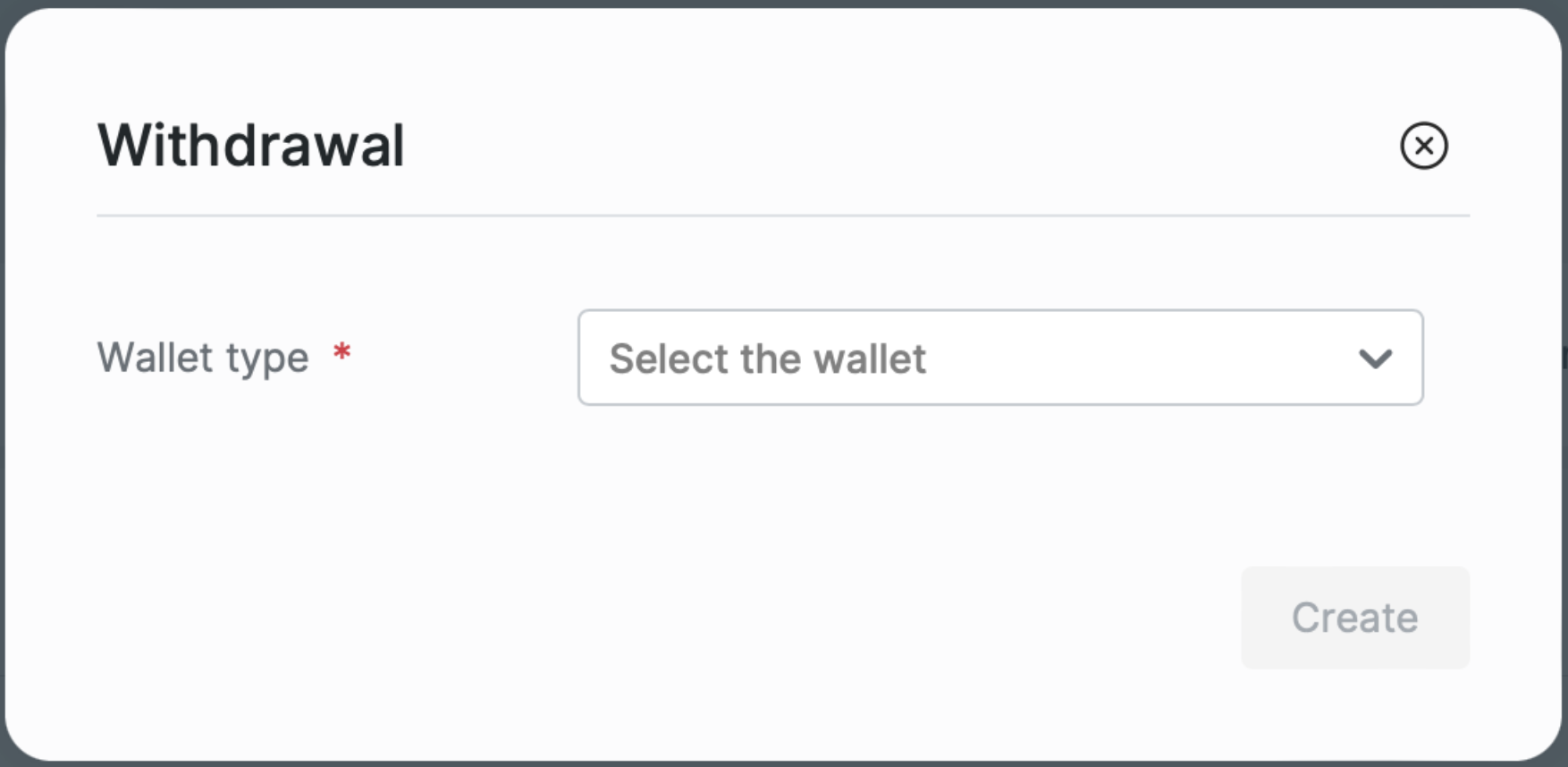 To create a withdrawal request, you need to go to the Withdrawals page Payments  → Withdrawals and perform the following steps