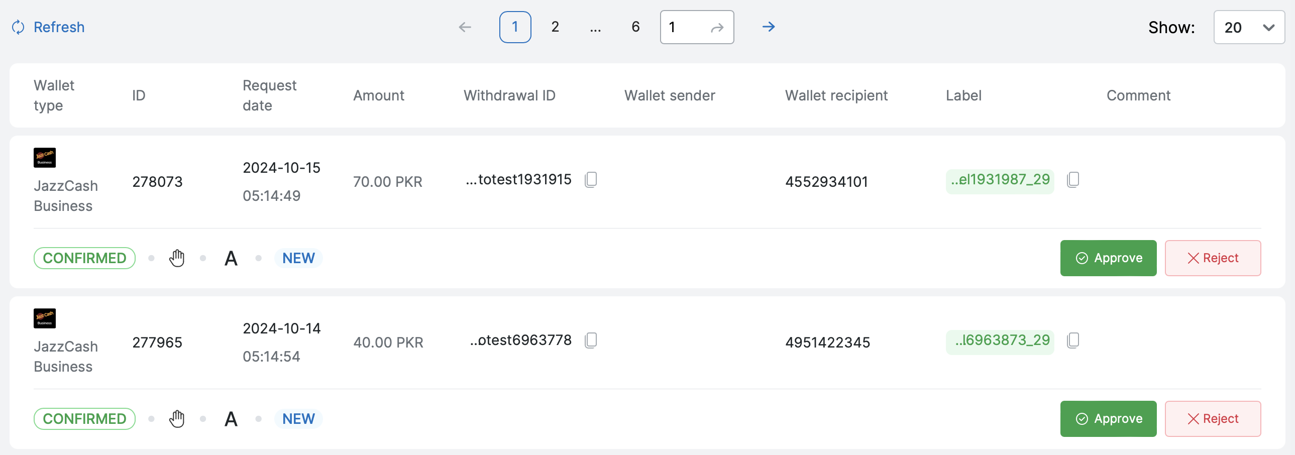 5 | REJECTED | Статус для вывода, когда заявка на вывод была отклонена. |