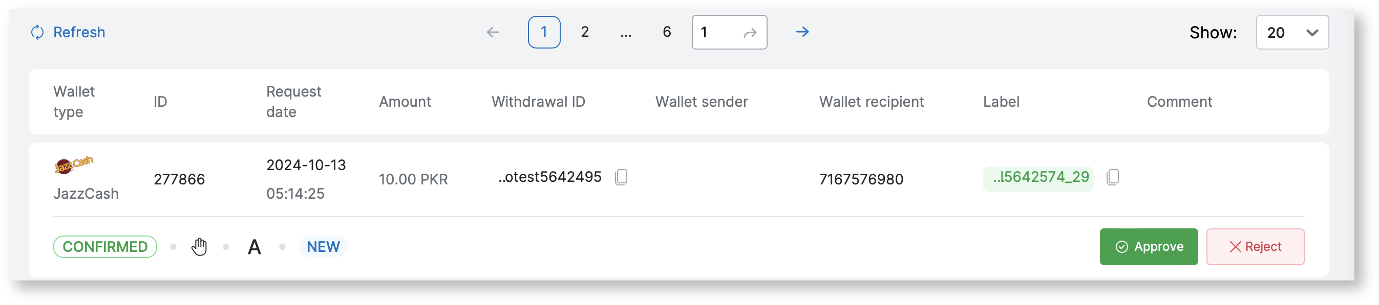 To create a withdrawal request, you need to go to the Withdrawals page Payments → Withdrawals and perform the following steps